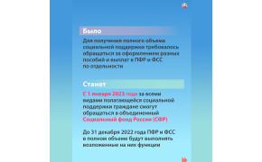 С 1 января 2023 года начнет работу Социальный фонд России, который объединит Пенсионный фонд и Фонд социального страхования.