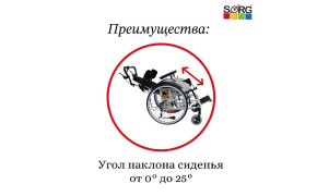 - сиденье с регулировкой угла наклона от 0° до 25 , складная