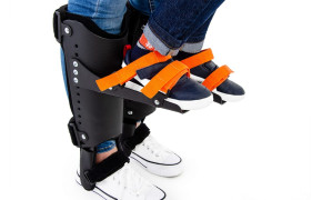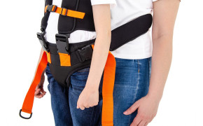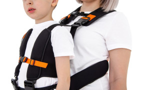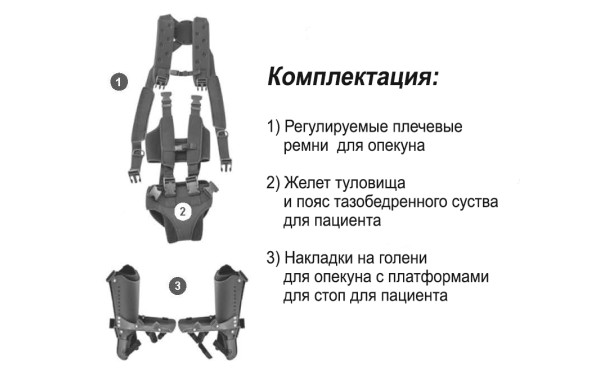 Изделие состоит из трех частей: жилета взрослого, бедренной детской повязки и накладок голени с платформами для стоп.