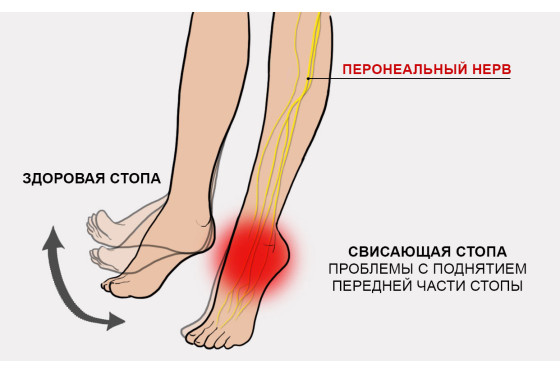 - Различные формы парезов и параличей, в том числе вялый паралич стопы