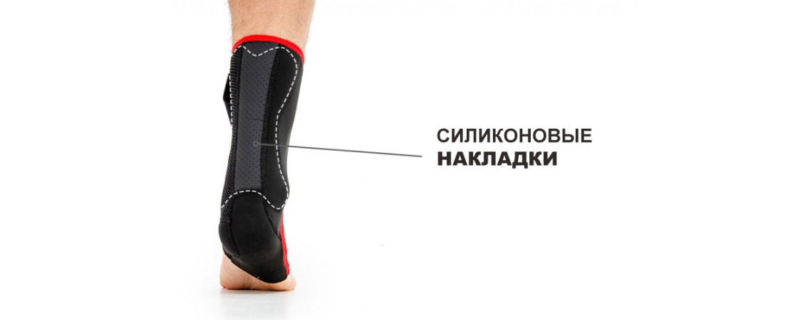 - Ортез противодействует раздражениям благодаря силиконовому вкладышу, расположенному выше пятки. Крылья вкладыша захватывают область перехода сухожилий в мышцы, облегчая движение ступни