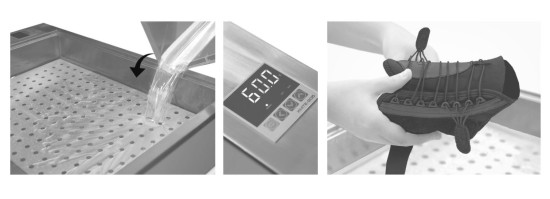 - Отстегиваем ремни и липучки: вставляем ортез в прибор, устанавливаем температуру на 150°.