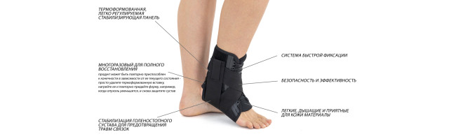 - неэластичные перекрещивающиеся ремни для надежной фиксации голеностопа