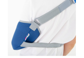 Ортез AM-SOB-03 это практичная поддержка плечевого и локтевого суставов, которая поддерживает согнутую в локте травмированную руку. Бандаж снабжен плечевой лентой, располагающейся на здоровой стороне тела, длина которой регулируется. Дополнительная обездвиживающая фиксация обеспечивается за счет поясного ремня, а также фиксации первого пальца, обеспечивающая дополнительную точку стабилизации конечности.