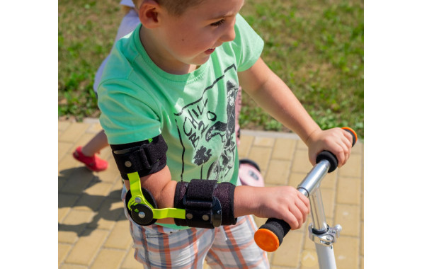 Ортез надежно фиксирует руку ребенка заменяя тяжелые гипсовые повязки. Боковая легкая алюминиевая шина, оборудованная компактным регулировочным механизмом, обеспечивает идеальную анатомическую стабилизацию поврежденной конечности.