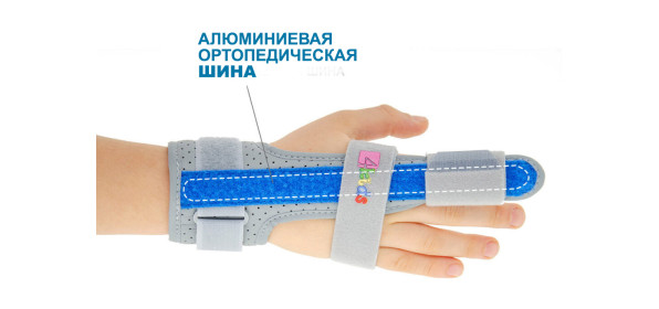 Ортопедическое изделие обеспечивает комфортную и правильную иммобилизацию травмированных частей кисти (кроме первого пальца), что способствует скорейшему выздоровлению ребенка. Это универсальное изделие, которое можно использовать на правой и на левой руке, а также с внешней и с внутренней стороны пальца.