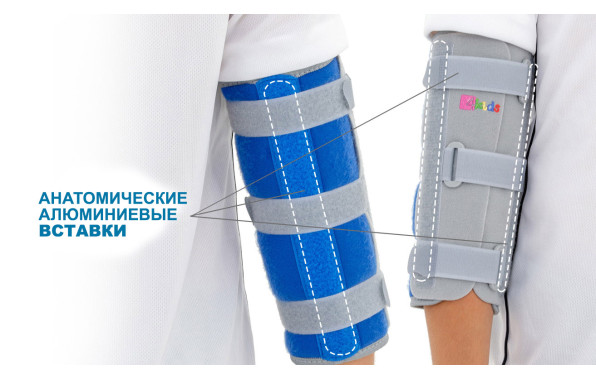 Четыре анатомических вставки, используемых в ортезе, удерживают сустав в разогнутом положении и препятствуют его сгибанию.