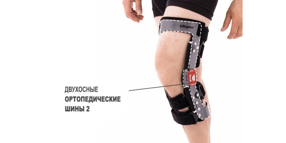 - Четыре точки фиксации защищают колено и уменьшают напряжение сустава. Точки приложения – рама на передней части бедра, передний ремень для голени, нижний бедренный ремень, задний большеберцовый ремень