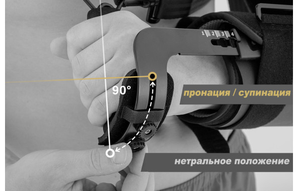 Ортез оборудован шиной 1RE. Шины обеспечивают латеральную фиксацию верхней конечности.