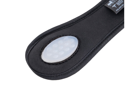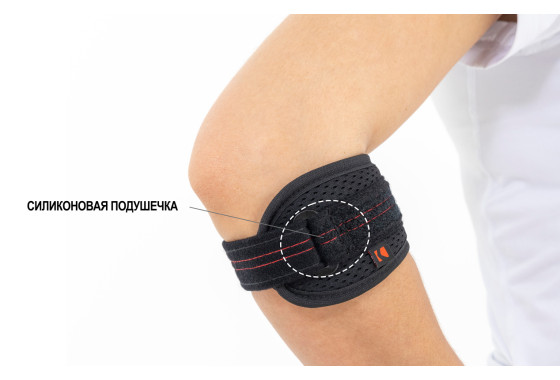 Инновационная конструкция ортеза AM-LX-02 позволяет силиконовой подушечке концентрировать давление на мышцах и сухожилиях, затронутых этим заболеванием. Подушечка создает давление на места крепления проксимальных разгибателей и сгибателей предплечья и кисти. Уменьшает риск перегрузки и надрыва сухожилий, а в случае травмы облегчает и ускоряет заживание. Силиконовая подушечка предназначена для микромассажа во время ношения бандажа. Полиамидная пряжка регулирует силу давления.