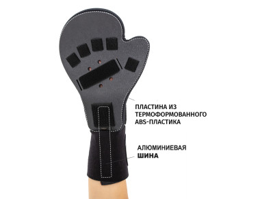 Ортез имеет липучки, которые стабилизируют все пальцы в разогнутом положении и предотвращают их сгибание. Кроме того, ортез имеет ремень-липучку, дополнительно стабилизирующий пястные кости, обхватывающий ремешок на лучезапястный сустав и мягкий ремешок на предплечье.