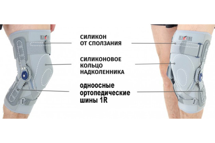 - Ортез стабилизирует коленный сустав, разгружает прикрепления мышц