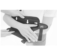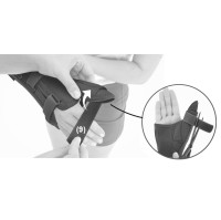 Открытая конструкция ортеза позволяет легко надевать и снимать его, а также быстро менять повязки. Ортез имеет несколько ремней на липучке, которые позиционируют ортез на конечности и позволяют установить индивидуальную компрессию.