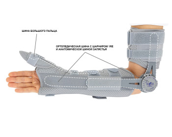 Ортез позволяет эффективно иммобилизировать локтевой, лучезапястный сустав, а также седловидный сустав большого пальца.