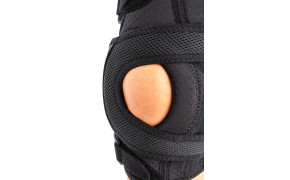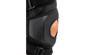 Передняя часть ортеза изготовлена из перфорированного неэластичного сырья ActivePren ™, задняя часть ортеза для облегчения отвода пота выполнена из ажурного эластичного трикотажа ProSix ™. Использование такого тонкого и гибкого материала за коленом облегчает сгибание ноги. Застежки из материала AirDistance III™