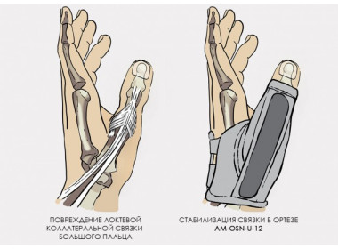 Для предотвращения этой сложной травмы рекомендуется применять наш ортез большого пальца AM-OSN-U-12, созданный специально для лыжников. Благодаря специальной конструкции этот ортез умещается под перчатку лыжника. Может применяться профилактически или в качестве иммобилизации травмированного пальца. Не ограничивает движений запястья.