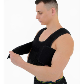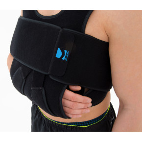 Плечевой бандаж надежно фиксирует плечевой сустав и предплечье, снимая нагрузку с поврежденной области. Широкий разъемный пояс надежно фиксирует плечо к туловищу.