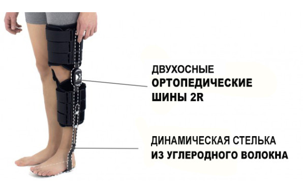 Ортез нижней конечности KAFO с шинами 2R и динамичным стоподержателем из углеволокна Reh4Mat Am-kds-am/2r