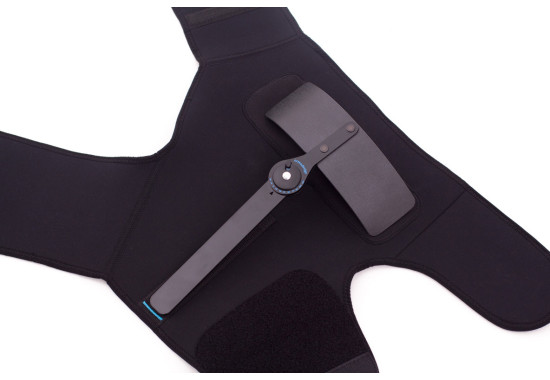 Ортез имеет подвижную шину бедра из специального сплава алюминия с порошковым покрытием для защиты от пота с углом регулировки каждые 15 градусов. Она помещена в специальный боковой карман, ее можно легко снять.