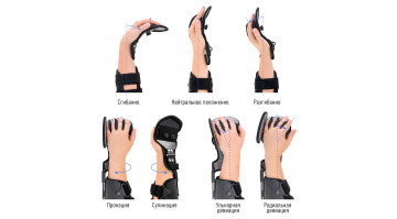 - Предусмотрен шарнир для установки запястья в согнутом, разогнутом или нейтральном положении;