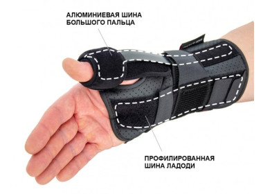 Ортез имеет анатомическую форму, что позволяет достигать максимального уровня стабилизации запястья и сустава