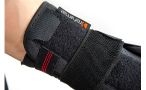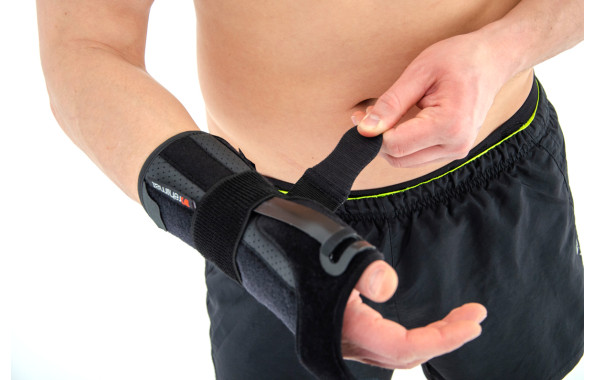 Крепится ортез одним широким объемным эластичным ремнем на предплечье и двумя узкими. С их помощью регулируется степень компрессии, что важно при отеках в области поврежденного сустава. В ладонной части ортез имеет анатомически изогнутую съемную шину.
