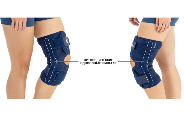 Ортез оснащен двумя независимыми наборами укрепляющих поясов, выполненных из лент VELCRO. Изделие оборудовано одноосными боковыми шинами с зубчатым механизмом, позволяющими регулировать угол сгибания и разгибания каждые 15°. Шины расположены в ортезе в виде буквы Х – это способствует надлежащему прилеганию изделия к охраняемой конечности и позволяет достигнуть отличной фиксации оберегаемого сустава.
