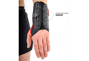 В ладонной части ортеза по всей его длине идет анатомически профилированная шина из сплава алюминия. В тыльной части находятся две прочные, упругие ортопедические шины из высококачественного пластика.