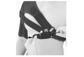 3-ий уровень: ремень для мягкого приведения руки к телу (чем ниже на ортезе закреплен ремень, тем сильнее абдукция), улучшения кровообращения, защита мягких тканей, включая радиальный нерв.