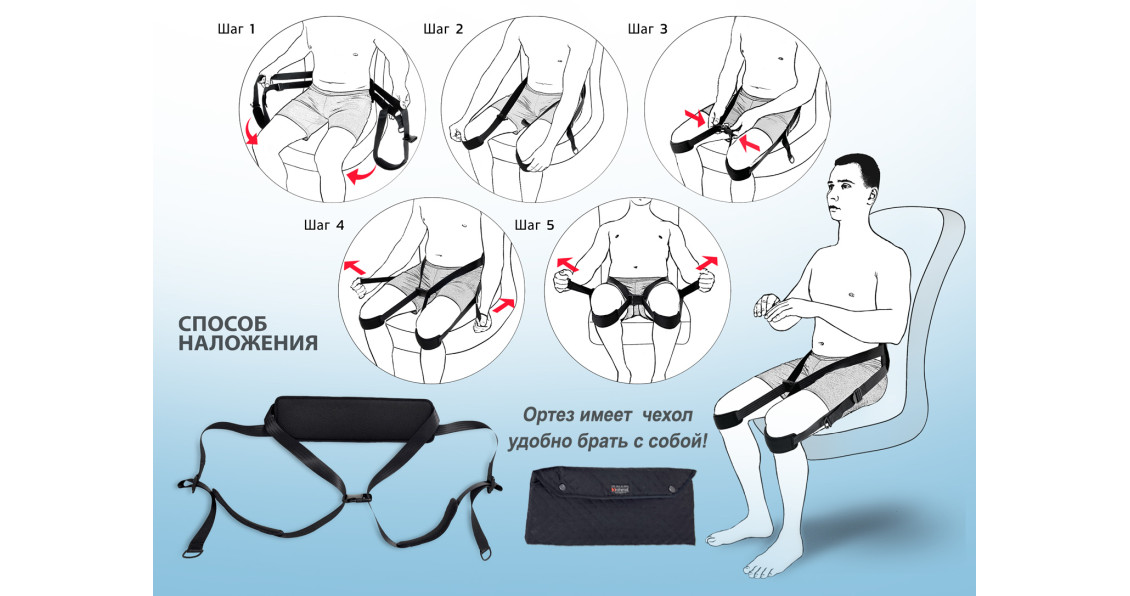 - Петли ремней надеваются на колени – натяжение при этом регулируется пряжками, доводя лордоз поясницы до комфортного уровня