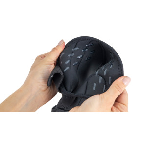 - Состоит из трехслойного материала с поверхностным слоем из спандекса, неопреновым внутренним слоем и махровой подкладкой;