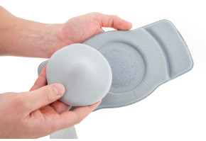 Силиконовые подушечки анатомического профиля имеют физиологическую овальную форму, что обеспечивает эффективное удержание брюшных покровов «внутри» брюшной стенки и препятствует их выпячиванию наружу. Кроме того, силиконовая подушечка крепится к полностью негибкой части пояса (см. грыжевые бандажи AM-PPB и AM-PPB-01), что само по себе является адекватной защитой от грыжи.