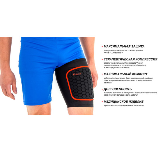 Ортез бедра R4M-U - профессиональное медицинское устройство, предназначенное для активных людей. Ортез отлично защищает подколенные сухожилия и четырехглавую мышцу от травм и обеспечивает комфортную терапевтическую компрессию. Изготовлен из удобного ультратонкого материала PowerElastic ™ и оснащен специальной термоформованной вставкой из сотовой пены под названием HONEYCOMBactive ™. Эта вставка защищает мягкие ткани и кости от травм в результате удара или падения.