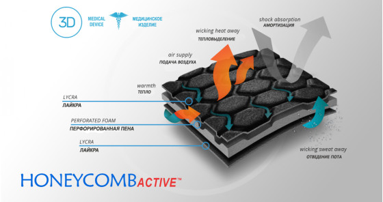 Спортивный рукав для локтя и предплечья оснащен оригинальной термоформированной пеной в виде сот под названием HONEYCOMBactive™. Она прекрасно гасит ударную нагрузку предотвращая царапины, ссадины и ушибы.