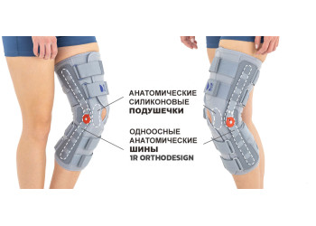 Ортез IB-SKL/1R предназначен для длительного применения пациентами со сложными случаями нестабильности коленного сустава (частичное или полное повреждение передней крестообразной связки) вследствие травмы (перед и после операции) либо дегенеративных заболеваний. В ортезе осуществляется 6-точечная стабилизация коленного сустава: четыре ремня с независимой регулировкой, по два над и под коленом и две ортопедические шины 1R orthodesign, создающие дополнительные две точки опоры через пелоты на коленном суставе. Каждый ремень имеет регулировку спереди и сзади, что позволяет максимально точно установить ортез с учетом индивидуальных особенностей.
