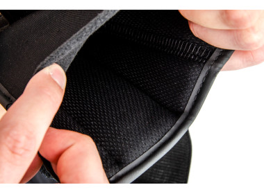 Ортез изготовлен из материала AirSanmed™.Особенность этого материала в том, что он неэластичный, благодаря чему ортез хорошо фиксирует сустав. Подкладка из дышащей махровой хлопчатой ткани Внутренний слой состоит из перфорированной комфортной пенки EVA, защищающей кожу от жестких частей ортеза, а снаружи находится медицинский перфорированный ламинат для лучшей вентиляции и отвода пота с антибактериальными свойствами на основе цеолита серебра. Материал очень прочный что позволяет использовать его при занятиях спортом