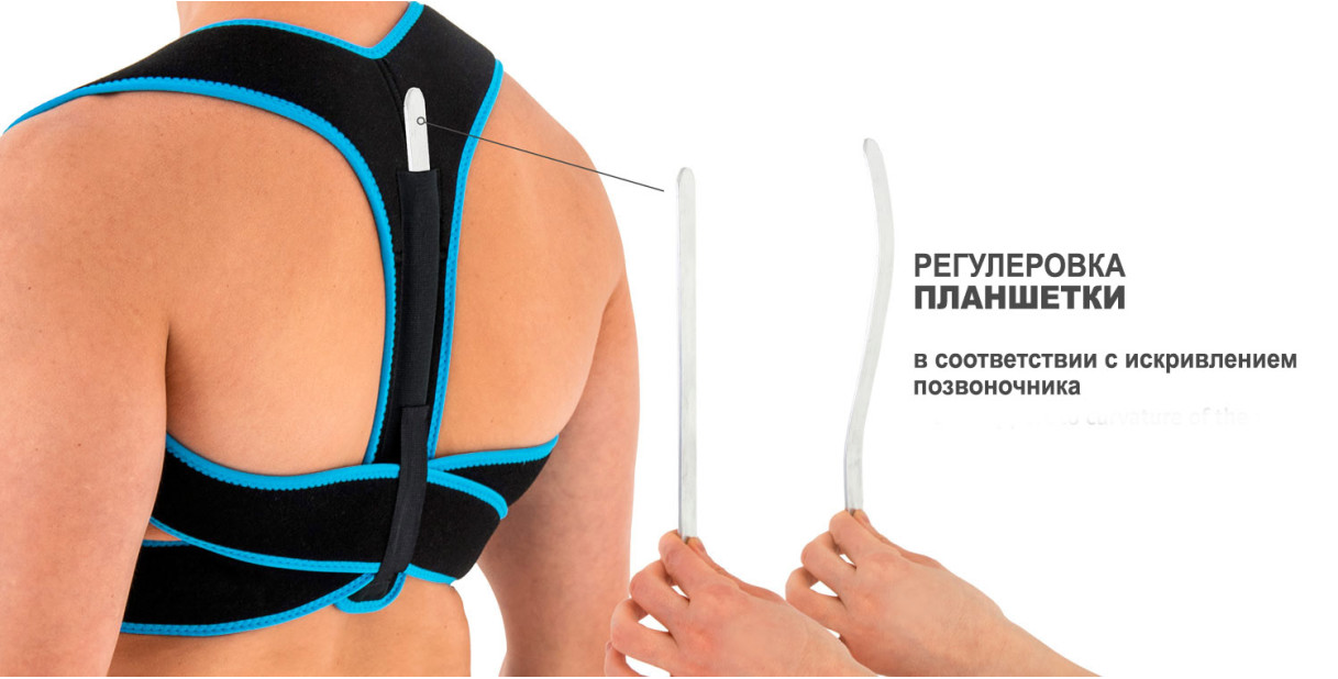 - Задняя часть ортеза имеет алюминиевую шину, которая обеспечивает жёсткость. Она может быть многократно скорректирована под текущую степень искривления позвоночника – то есть ортез будет меняться вместе с осанкой.