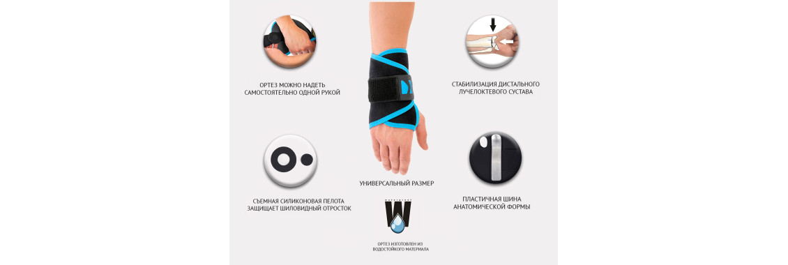 Ортез AM-OSN-U-17 для запястья с разгрузкой шиловидного отростка ускоряет лечение и восстановление после травм. Травмы в этой части руки сопровождаются сильной болью и как следствие невозможностью заниматься ежедневными бытовыми делами и спортивными упражнениями, уменьшают подвижность руки. Универсальный эластичный ортез данной модели стабилизирует дистальный лучелоктевой сустав и оптимален для консервативного лечения подобных проблем.