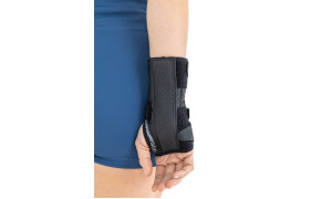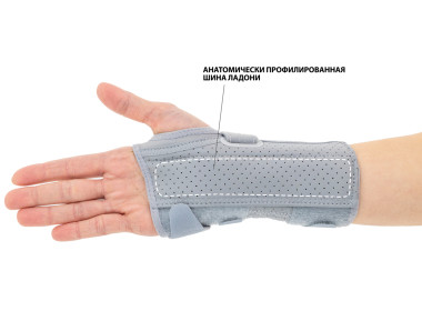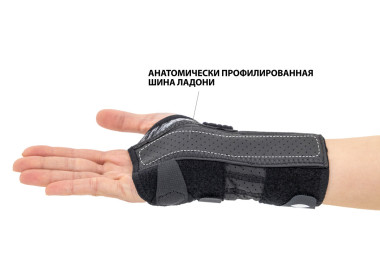 Изделие оснащено анатомически профилированной шиной фиксирующей запястье, а также лентой VELCRO, способствующей идеальному прилеганию изделия к конечности.