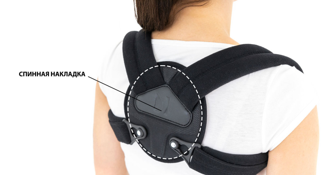 Восьмеричный ортез – реклинатор, состоит из нерастяжимых лент и задней накладки. Круглая облегченная накладка, закрепленная на спине, укрепляется вставкой из PELD, что позволяет лучше стабилизировать зону между лопатками. Вставка PELD имеет две вращающиеся пряжки, установленные на ней, что позволяет оптимально расположить плечевые ремни на теле пользователя. Такая конструкция изделия способствует эффективной коррекции дефектов осанки как у взрослых, так и у детей. Плечевые ленты, входящие в конструкцию, плотно прилегают всей поверхностью к телу человека и не сминаются. Изделие с внутренней стороны покрыто махровой тканью, благодаря чему его очень комфортно носить.