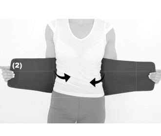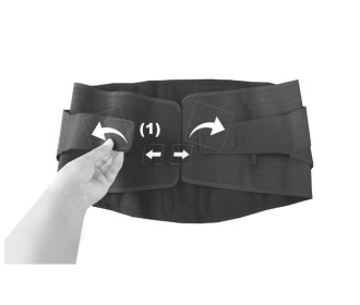 Неэластичные ремни в передней части высокого грудопоясничного бандажа с утягивающими ремнями Reh4Mat Fit Eb-lk-01 и клапан на застежке-липучке фиксируют ортез на теле и регулируют степень компрессии.