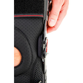 Задний открытый ортез AS-KX-06 с шинами с регулировкой подвижности с шагом в 15⁰ разработан для фиксации коленного сустава после травм. Ортез сочетает в себе плюсы открытых ортезов — простоту надевания благодаря полностью разъемной форме, а также функции закрытых ортезов — полную стабилизацию надколенника и коленного сустава. Стабилизирующее кольцо позиционирует коленную чашечку во время движения, оказывает микромассажный эффект